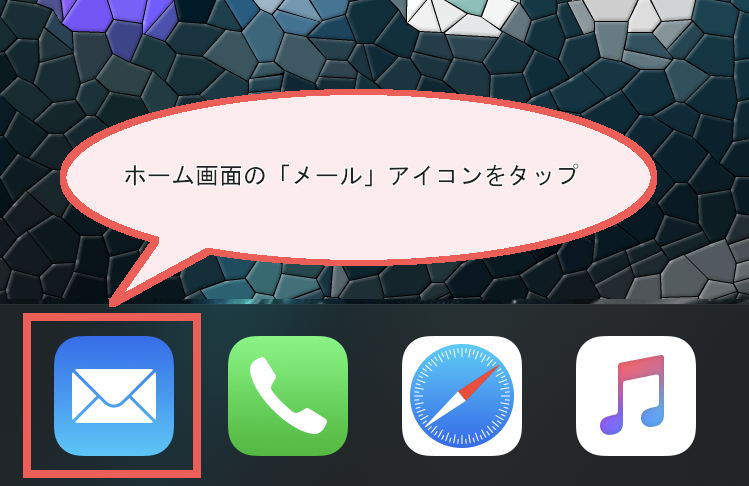 iPhone,iPadのホーム画面にある「メール」アイコンをタップしてメールアプリを起動します。